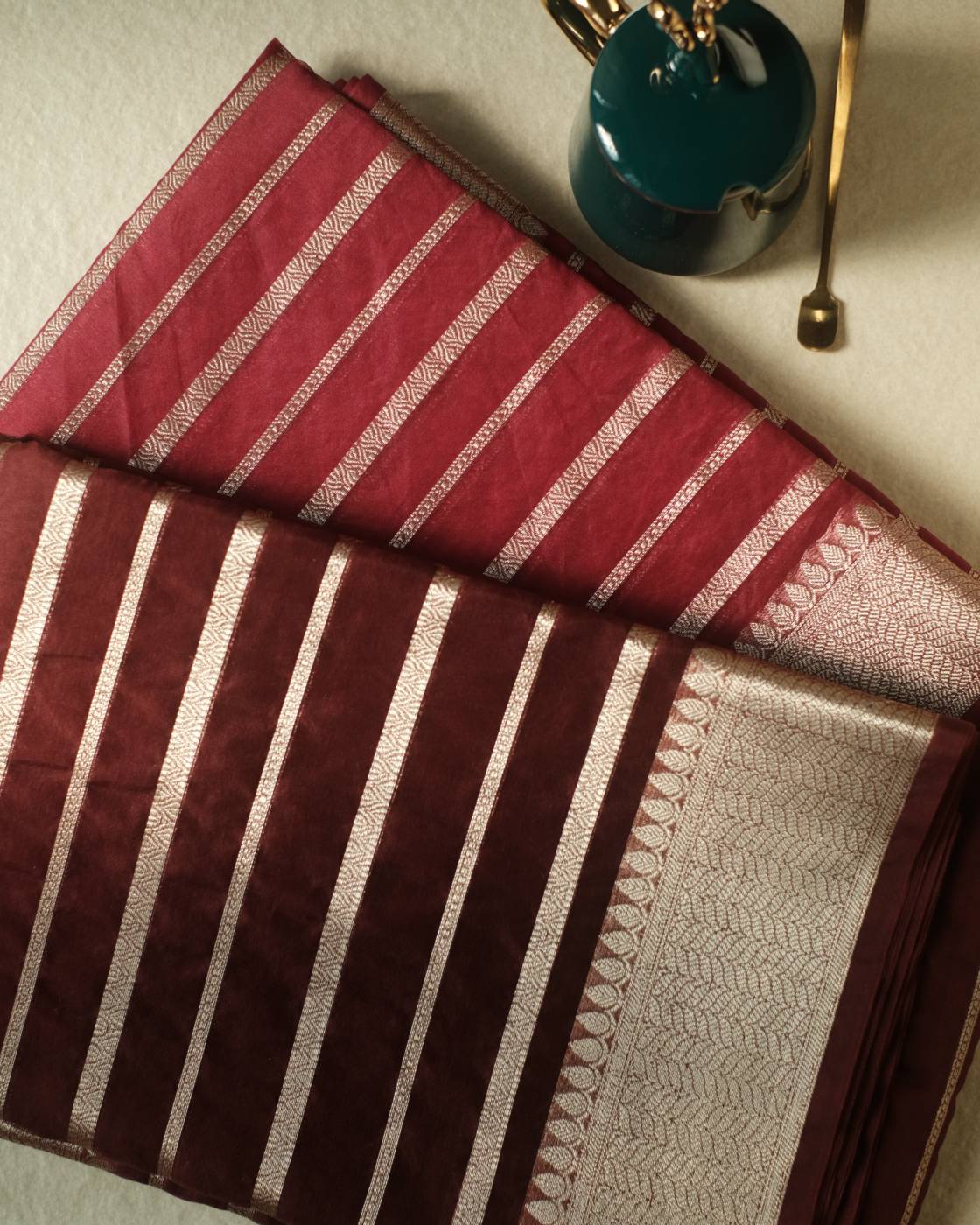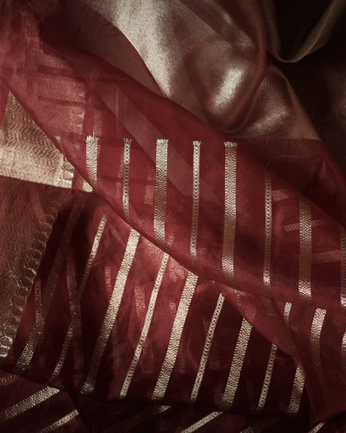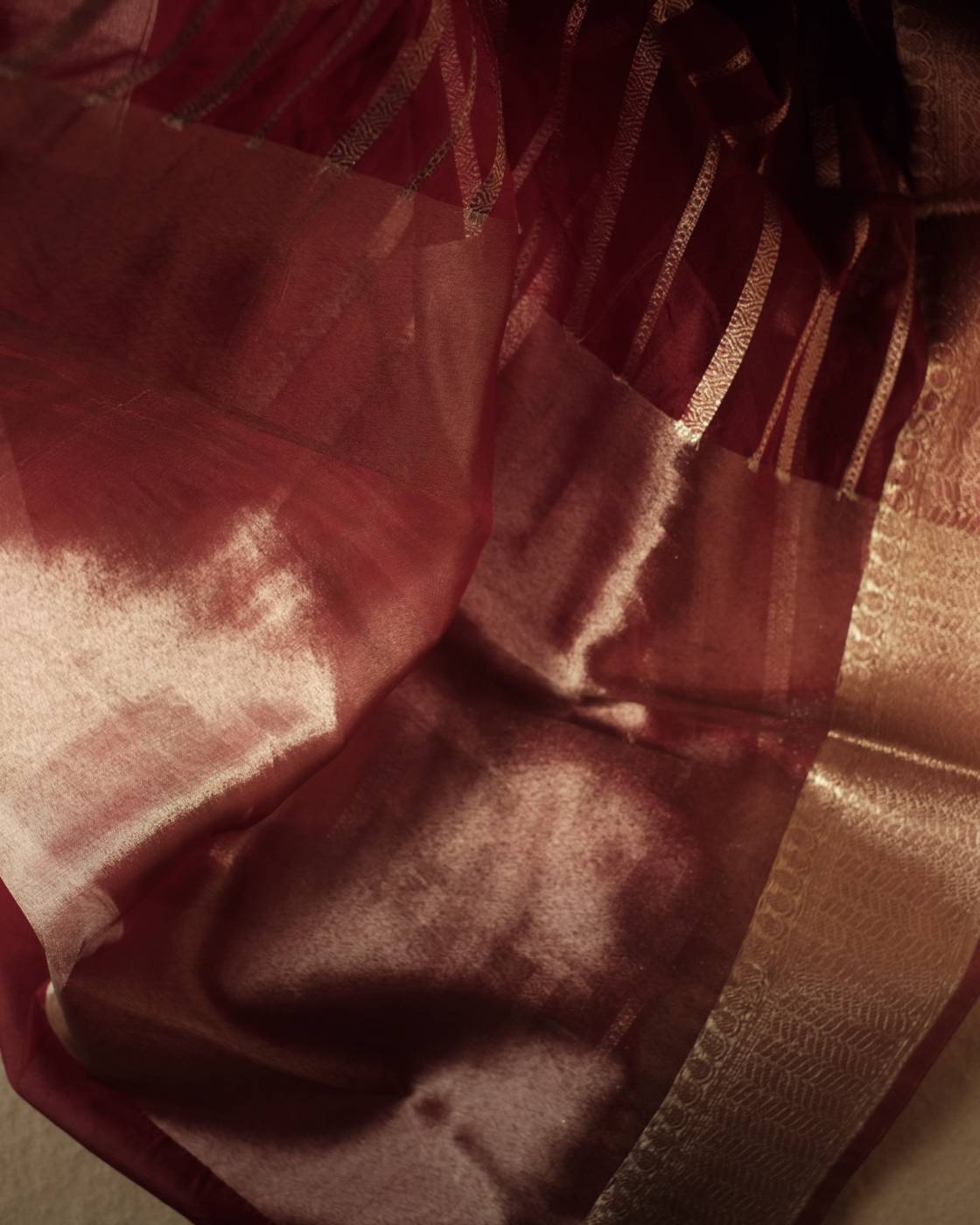 Kora Organza Saree Dark Red