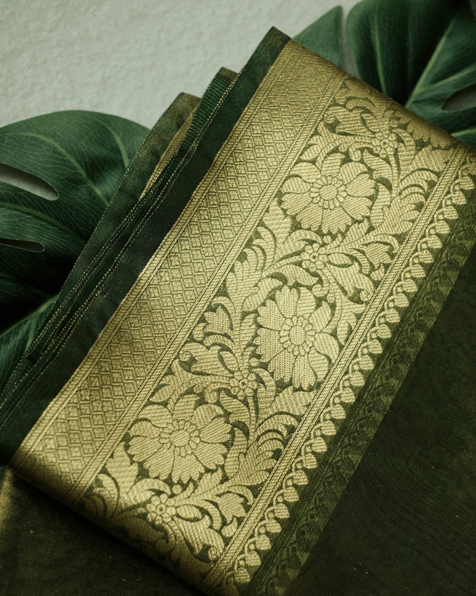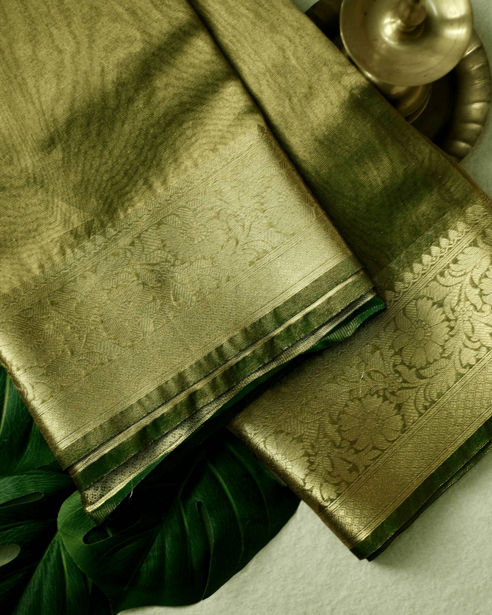 Tissue Silk Saree Olive green shade