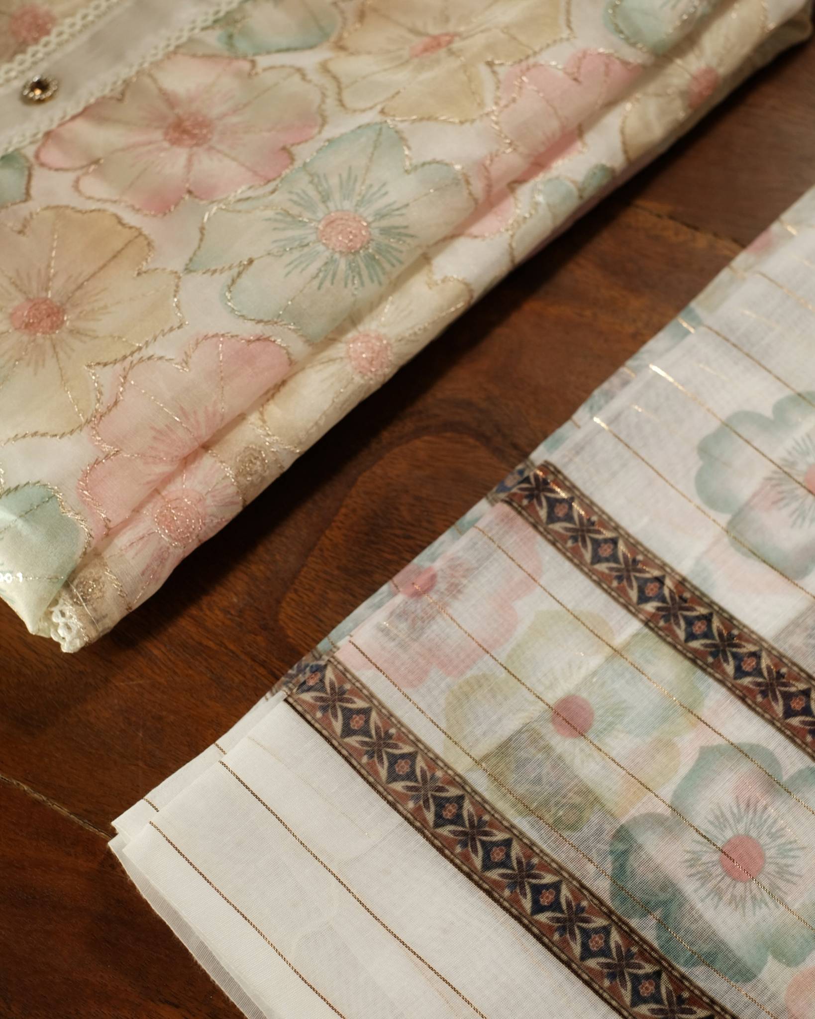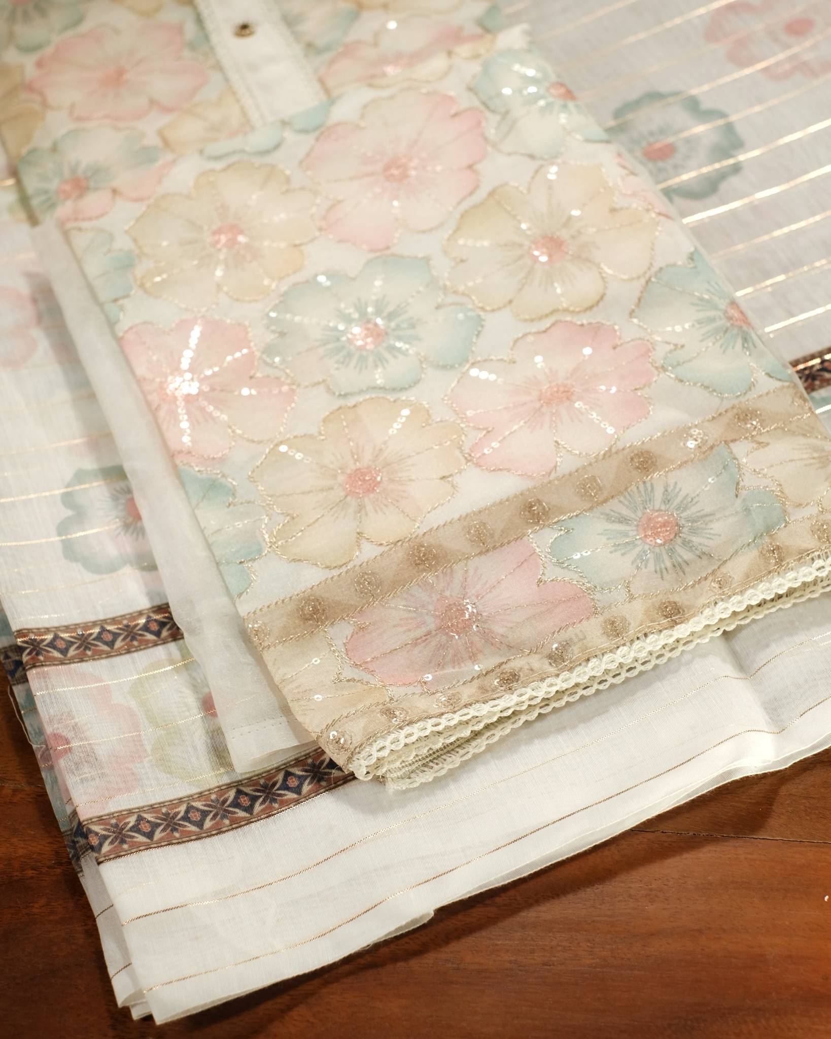 Off white Pastel floral printed Organza salwar material (3pc set)